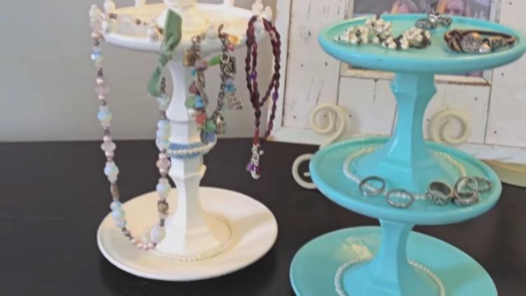 You could make a branch jewelry holder by simply cleaning and spray painting the branch and then securing it onto a wall or some other flat surface. Jewelry & nail polish dollar store organization. Diy dollar tree urn candle holders. Diy dollar tree easter vase See more ideas about jewellery storage, diy earring holder, jewellery display. I want to show you how to make beautiful bracelet and necklace holder using dollar. Those rollers look like those sponge jewelry holders. Most importantly, these ideas come along with complete instructions and diy guides that will explain all the construction steps for a specific diy jewelry organizer you have chosen from. Arrange your earrings along the twine for easy visibility, keeping your jewelry organized while enabling you to pick the best pair to match your outfit of the day! Shop at dollar tree — here's what you'll need: Free goodies straight to your inbox « dollar tree pool noodle wreath. Chicken wire and a picture frame. Fingernail polish display stand from angela east